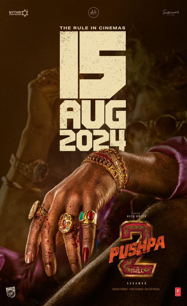 ரசிகர்களால் மிகவும் எதிர்பார்க்கப்படும் ‘புஷ்பா 2-தி ரூல்’ படத்தின் ரிலீஸ் தேதி இறுதியாக அதிகாரப்பூர்வமாக அறிவிக்கப்பட்டுள்ளது.  இப்படம் உலகம் முழுவதும் உள்ள திரையரங்குகளில் ஆகஸ்ட் 15, 2024 அன்று வெளியிடப்படும்.  அதிகாரப்பூர்வ தேதியுடன் வெளியாகியுள்ள இந்த புதிய போஸ்டர் சமூக ஊடகங்களில் ரசிகர்கள் மத்தியில் பேசுபொருளாகியுள்ளது. சுதந்திர தினம் மற்றும் ரக்ஷாபந்தன் விடுமுறை நாட்களின் நீட்டிக்கப்பட்ட வாரயிறுதியுடன் கூடிய இந்த வெளியீட்டுத் தேதி, பாக்ஸ் ஆபிஸ் வசூலையும் அதிகரிக்க சரியான வாய்ப்பை ஏற்படுத்தி உள்ளது.