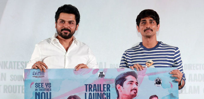 இந்த நிகழ்வில் சிறப்பு விருந்தினராக கலந்துகொண்ட நடிகர் கார்த்தி இந்தப்படத்தின் ட்ரெய்லரை வெளியிட, நடிகர் சித்தார்த் அதை பெற்றுக்கொண்டார்.