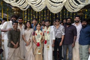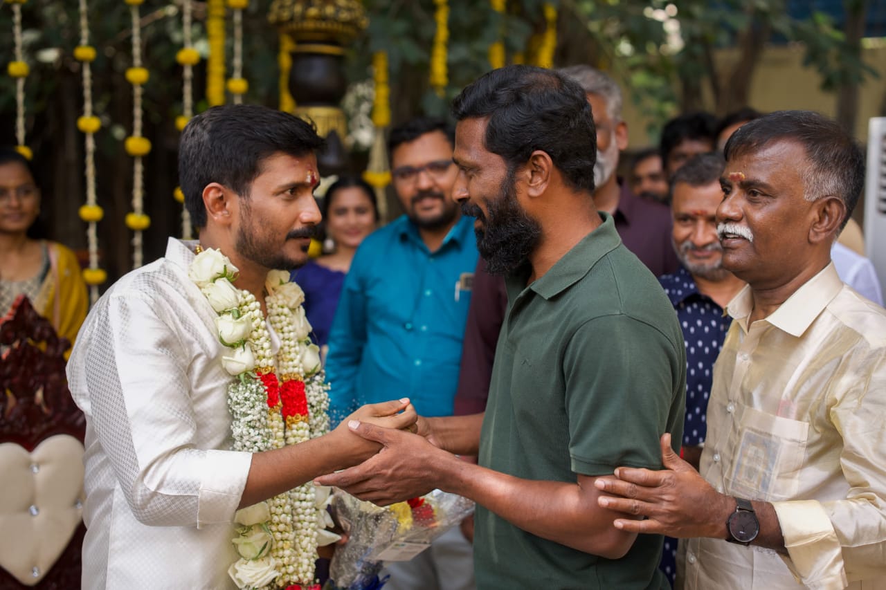 ‘பண்ணையாரும் பத்மினியும்’ என்ற படத்தின் மூலம் தமிழ் திரையுலகில் இயக்குநராக அறிமுகமானவர் எஸ். யூ. அருண்குமார். இப்படத்தின் வெற்றிக்குப் பிறகு விஜய் சேதுபதி நடிப்பில் ‘சேதுபதி’, ‘சிந்துபாத்’ என இரண்டு படங்களை தொடர்ந்து இயக்கினார். பிறகு சித்தார்த் நடிப்பில் வெளியான ‘சித்தா’ திரைப்படத்தையும் இயக்கியிருந்தார். இவர் தற்போது சீயான் விக்ரம் நடிப்பில் தயாராகி வரும் ‘வீர தீர சூரன்’ எனும் திரைப்படத்தினை இயக்கி வருகிறார். இந்நிலையில் இவருக்கும், ஏ. அஸ்வினி என்ற பட்டதாரி பெண்ணிற்கும் பெற்றோர்களின் சம்மதத்துடன் திருமணம் நிச்சயமானது. இதனைத் தொடர்ந்து நேற்று மதுரையில் உள்ள ஹெரிடேஜ் நட்சத்திர ஹோட்டலில் பெற்றோர்கள் – நண்பர்கள்- உறவினர்கள்- திரையுலக பிரபலங்கள் – முன்னிலையில் திருமணம் கோலாகலமாக நடைபெற்றது. இந்த திருமணத்திற்கு முன்னணி திரையுலக பிரபலங்களான சீயான் விக்ரம், மக்கள் செல்வன் விஜய் சேதுபதி, இயக்குநர் வெற்றிமாறன், எஸ் ஜே சூர்யா, சித்தார்த் , தயாரிப்பாளர் ஷிபு தமீன்ஸ், இயக்குநர் விக்னேஷ் சிவன், சுராஜ் வெஞ்சரமூடு, நடிகை துஷாரா விஜயன்,தயாரிப்பாளர் அருண் விஷ்வா, இயக்குநர் பூ சசி, இயக்குநர் சதீஷ், விவேக் பிரசன்னா, பால சரவணன், ஜி.கே பிரசன்னா உள்ளிட்ட பலர் கலந்து கொண்டு மணமக்களுக்கு வாழ்த்து தெரிவித்தனர்.