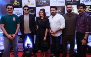 இந்திய அளவில் பெரும் எதிர்பார்ப்பை ஏற்படுத்தியுள்ள பான் இந்தியப் படமான “எம்புரான்” படம் வரும் மார்ச் 27 ஆம் தேதி உலகமெங்கும், திரையரங்குகளில் வெளியாகிறது. இப்படத்தின் புரமோசன் பணிகள் தற்போது படு தீவிரமாக நடந்து வருகிறது. படக்குழுவினர் இந்தியா முழுக்க பல இடங்களில் படத்தின் விளம்பரப் பணிகளை மேற்கொண்டு வருகின்றனர். இந்நிலையில் படக்குழுவினர் கலந்துகொள்ள, பத்திரிக்கை ஊடக நண்பர்கள் முன்னிலையில் இப்படத்தின் தமிழ்ப் பதிப்பிற்கான முன் வெளியீட்டு நிகழ்ச்சி கோலாகலமாக நடைபெற்றது..
