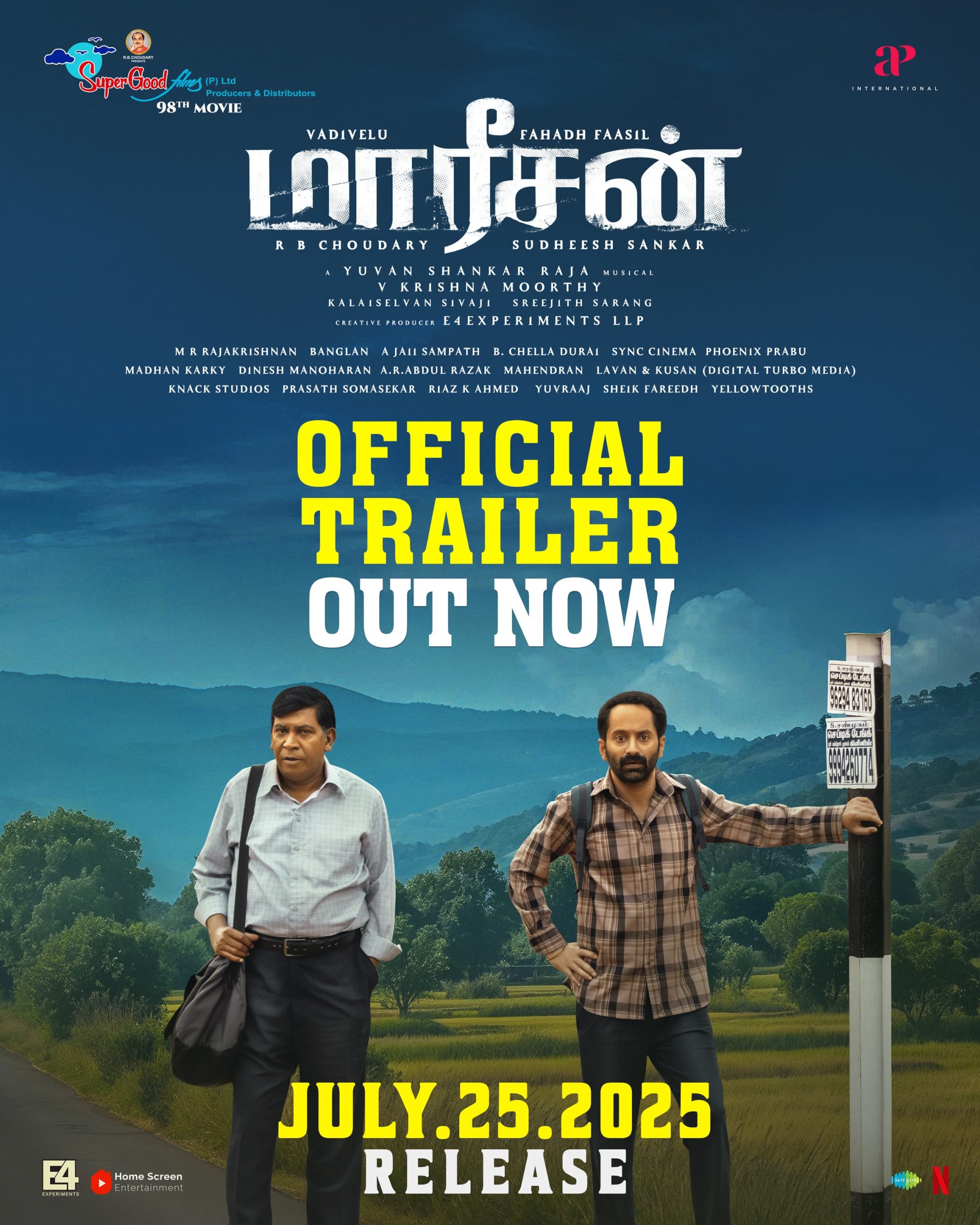 இயக்குநர் சுதீஷ் சங்கர் இயக்கத்தில் வி. கிருஷ்ணமூர்த்தி கதை, திரைக்கதை, வசனம் எழுதி, கிரியேட்டிவ் டைரக்டராக பணியாற்றியுள்ள ‘மாரீசன் ‘ திரைப்படத்தில் வடிவேலு, பகத் பாசில், கோவை சரளா, விவேக் பிரசன்னா, சித்தாரா, பி. எல். தேனப்பன், லிவிங்ஸ்டன் , ரேணுகா, சரவணா சுப்பையா , ‘ஃபைவ் ஸ்டார் ‘ கிருஷ்ணா, ஹரிதா, டெலிபோன் ராஜா உள்ளிட்ட பலர் நடித்துள்ளனர். கலைச்செல்வன் சிவாஜி ஒளிப்பதிவு செய்திருக்கும் இந்த திரைப்படத்திற்கு யுவன் சங்கர் ராஜா இசையமைத்திருக்கிறார். ஸ்ரீ ஜித் சாரங் படத்தொகுப்பு பணிகளை மேற்கொள்ள, மகேந்திரன் கலை இயக்கத்தை கவனித்திருக்கிறார். இந்த திரைப்படத்திற்கு E4 எக்ஸ்பிரிமெண்ட்ஸ் எல். எல் பி கிரியேட்டிவ் புரொடியுசராக பணியாற்றியுள்ளது. கிராமிய பின்னணியில் ட்ராவலிங் திரில்லராக தயாராகி, சூப்பர் குட் பிலிம்ஸின் 98 ஆவது படமான இதனை பிரபல தயாரிப்பாளர் ஆர். பி. சவுத்ரி தயாரித்திருக்கிறார். இந்த திரைப்படத்தை உலகம் முழுவதும் ஏ பி இண்டர்நேஷனல் விநியோகிக்கிறது.