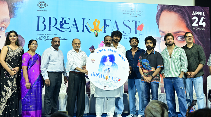 ‘செல்லமே’, ‘ஆனந்த தாண்டவம்’ படங்களை இயக்கிய காந்தி கிருஷ்ணா இயக்கத்தில், கிரிஜா வரதராஜ் தயாரிப்பில், நடிகர்கள் ராணவ், ரோஸ்மின், சம்பத்குமார், கஸ்தூரி, கிருத்திக் மோகன் உள்ளிட்டப் பலர் நடித்திருக்கும் திரைப்படம் ‘பிரேக்ஃபாஸ்ட்’. இந்த மாதம் 24 ஆம் தேதி வெளியாக இருக்கும் இந்தப் படத்தின் இசை வெளியீட்டு விழா நடைபெற்றது.